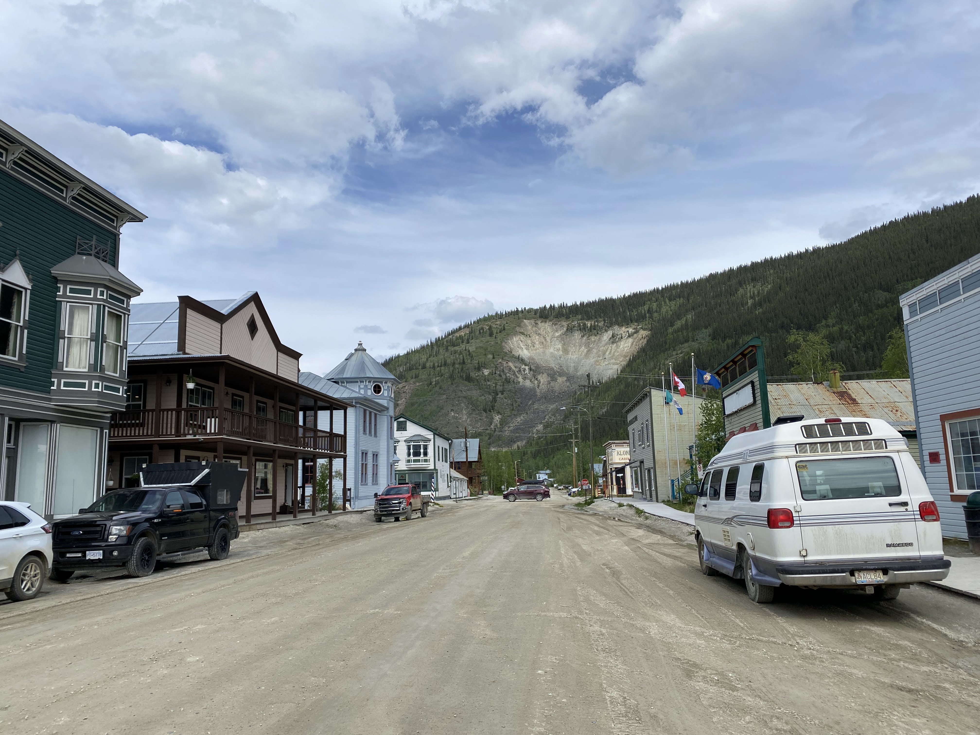 The final stretch into Dawson City. All along this section were huge piles of rocks, the tailings left from mining