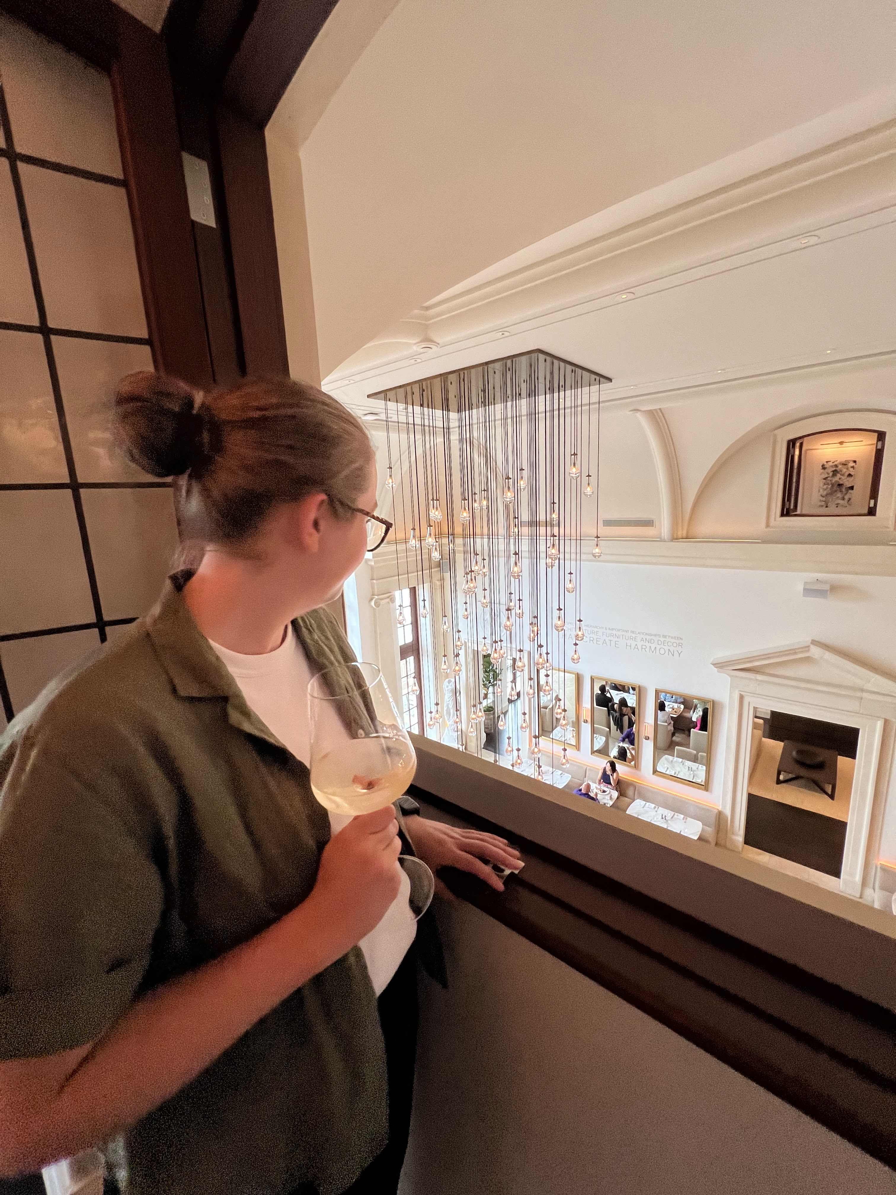 For dinner we had reservations at the Dining Room in the new Restoration Hardware in Indianapolis. The Linden House, an estate owned by Christel De Haan was bought by RH in 2022 for 14.5 million dollars. She was one of the richest women in the country, a timeshare magnate. She only lived in Linden House for 13 years before her death in 2020.