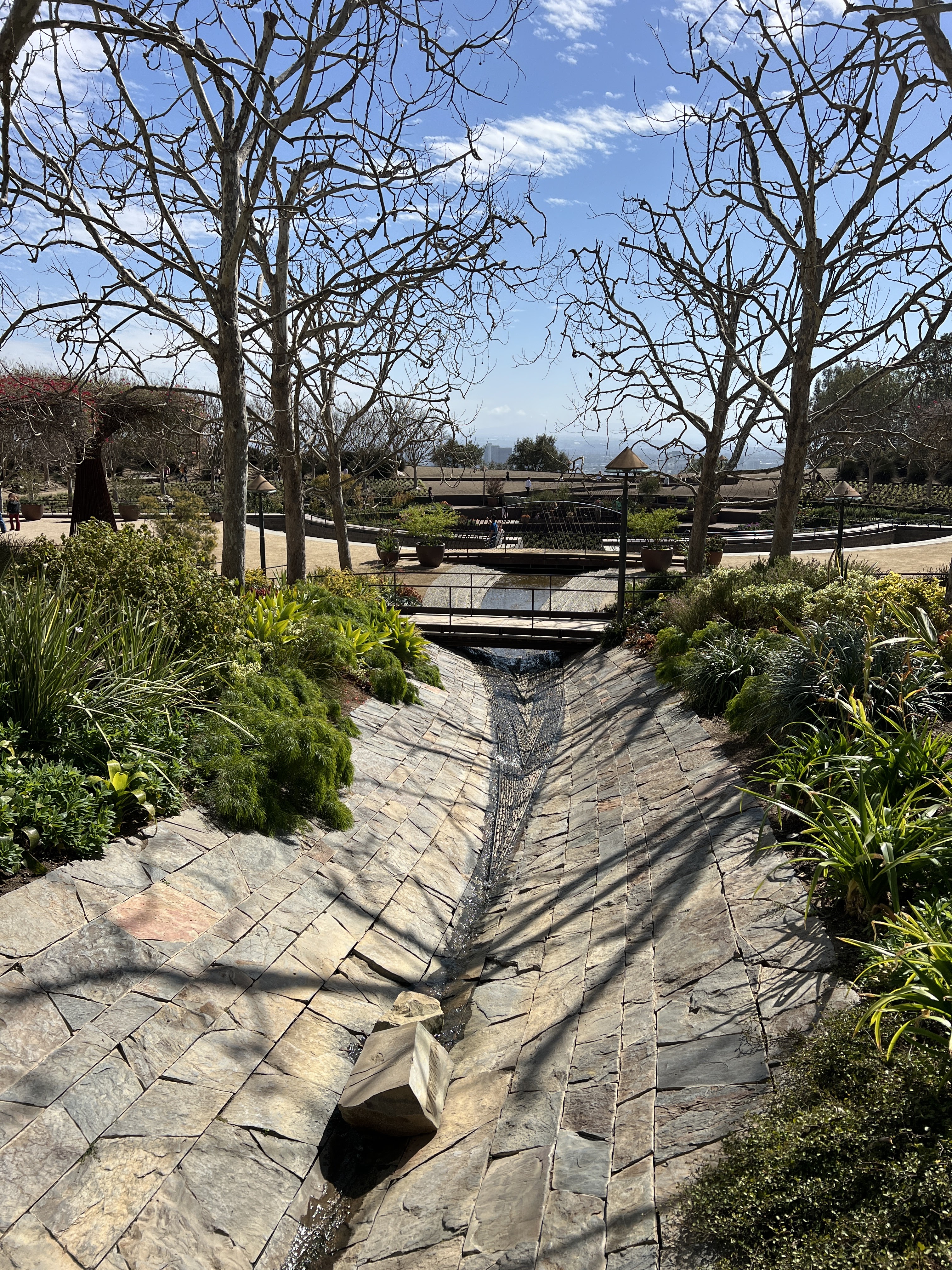 nice view of the garden and a lot of the Getty Center buildings